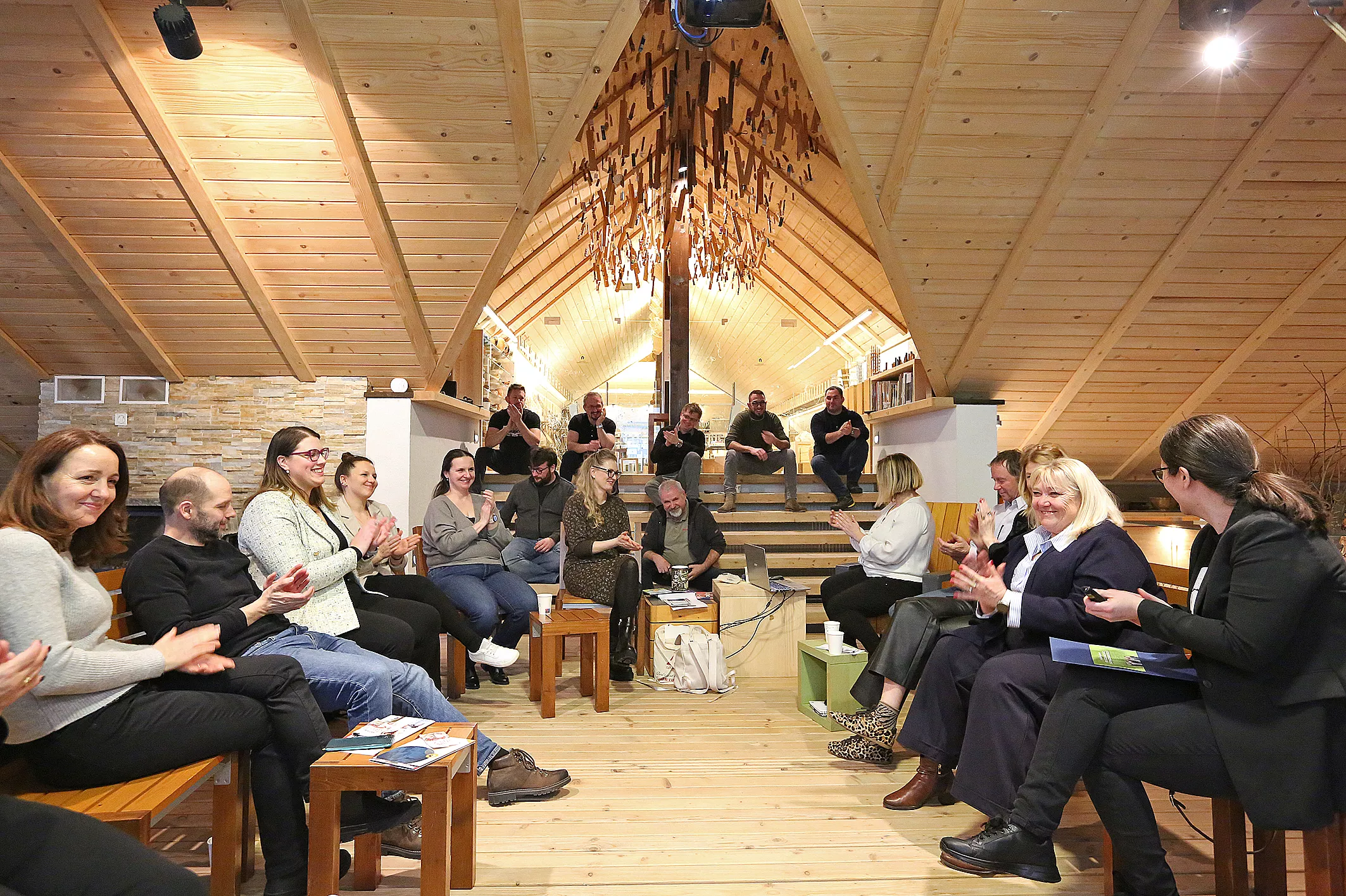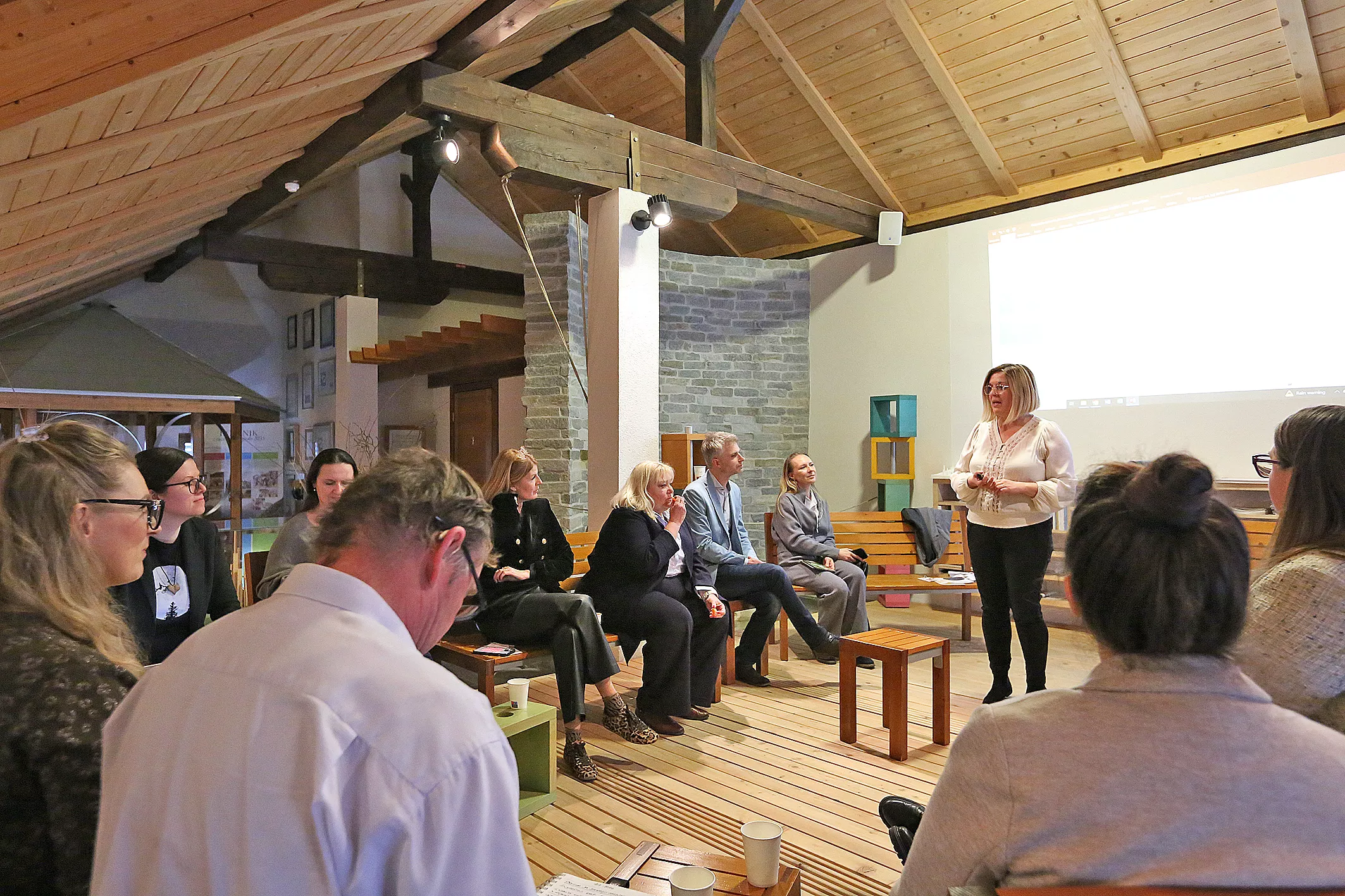 Prostor, ki že sam po sebi spodbuja razmislek izven okvirjev, je za nekaj ur postal stičišče podjetnikov različnih strok, izkušenj in pogledov. Na enem mestu so se srečali predstavniki proizvodnje, storitev, kreativnih industrij, svetovanja, HR-ja, hortikulture, oblikovanja, načrtovanja, digitalnih rešitev in upravljanja terjatev. Prav ta raznolikost je bila temeljno izhodišče delavnice.
