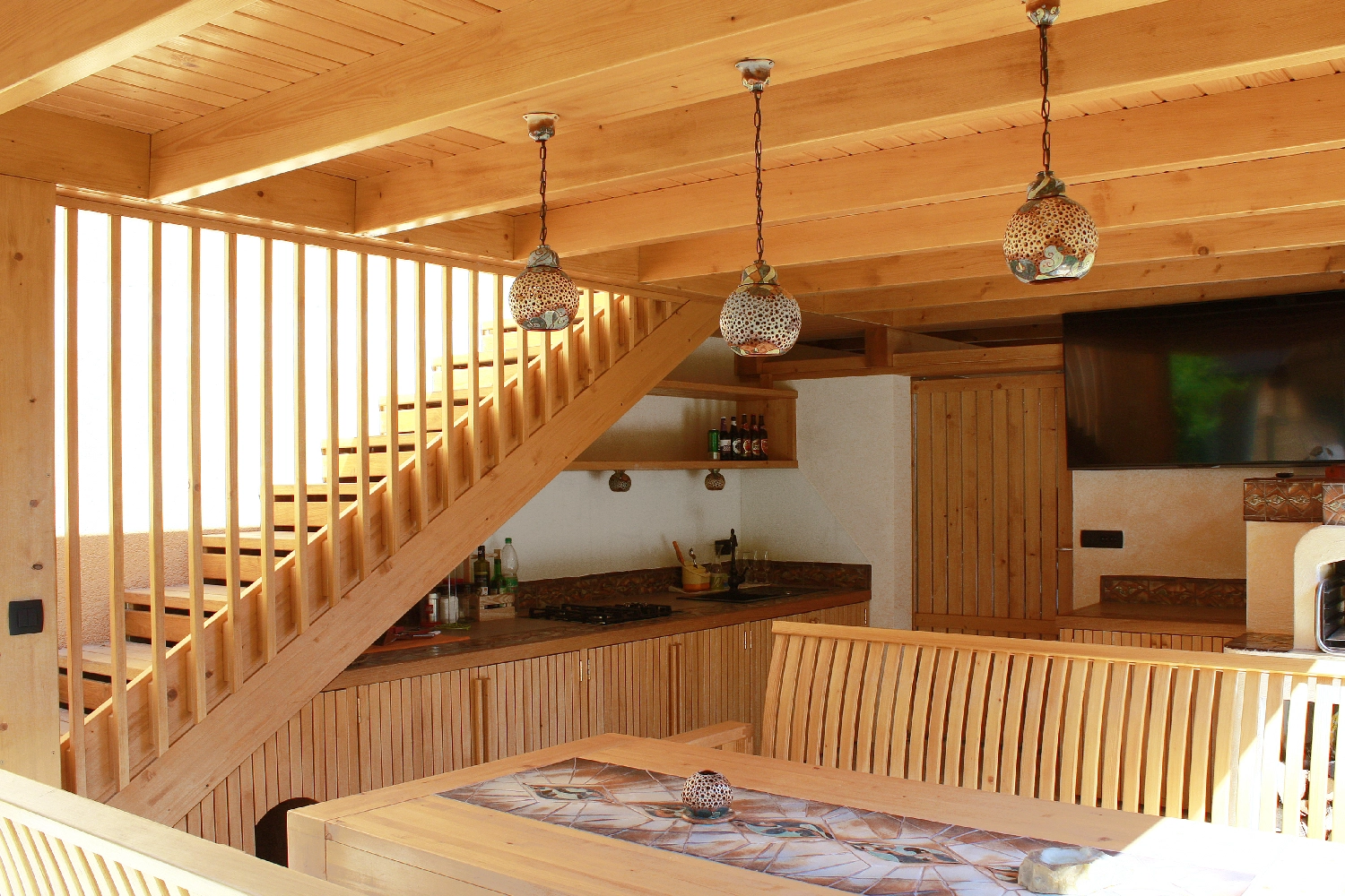 Izkušeni mojstri v delavnici in na terenu poskrbijo za to, da je izvedba skladna z načrtom, kakovostna in terminsko usklajena. Glede na potrebe posameznega projekta se v fazi projektiranja in izvedbe povezujemo z zanesljivimi partnerji, člani poslovne skupine Centra za zunanjo ureditev in drugimi preverjenimi sodelavci, ki lesene elemente dopolnijo z različnimi materiali.