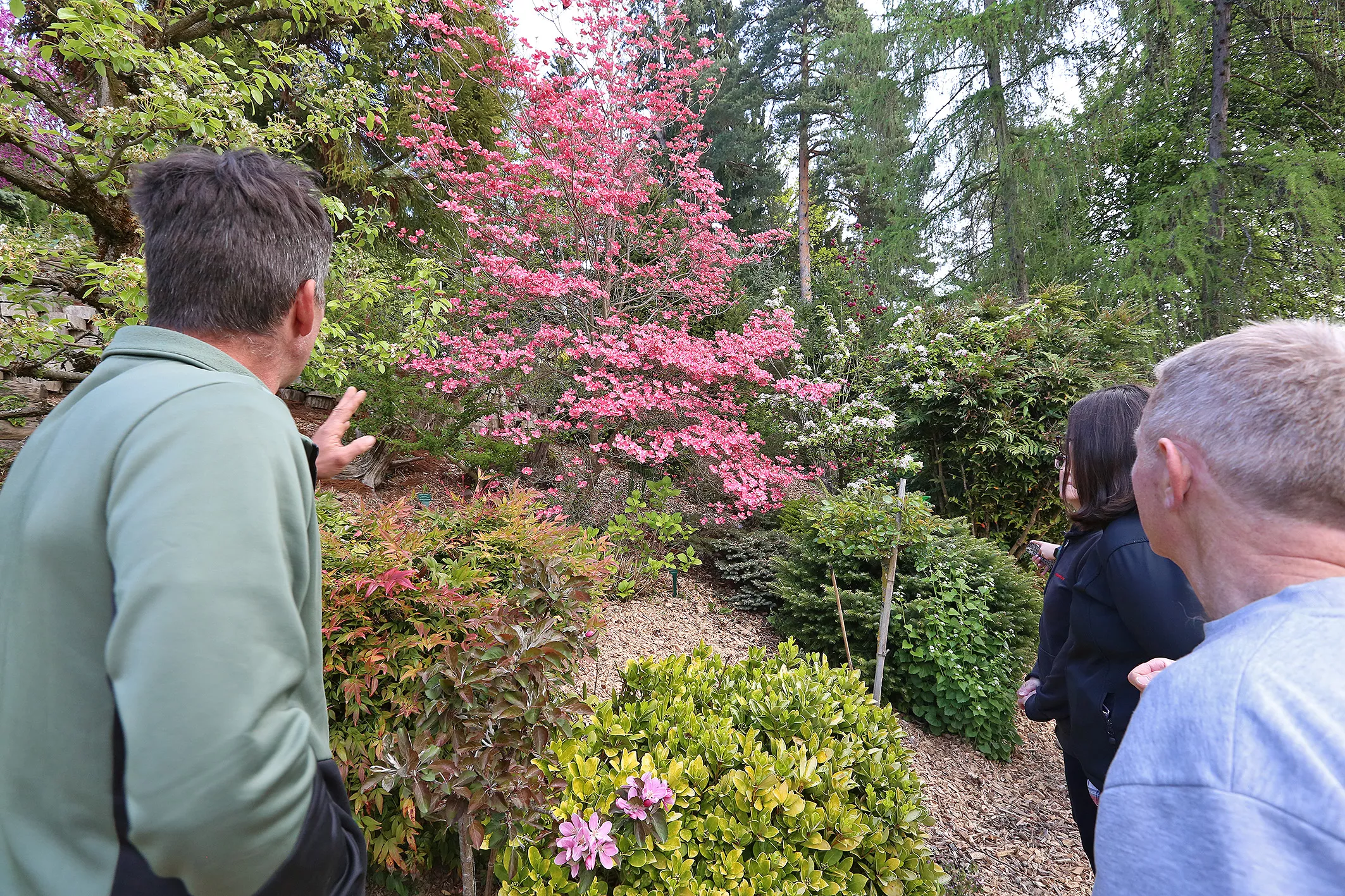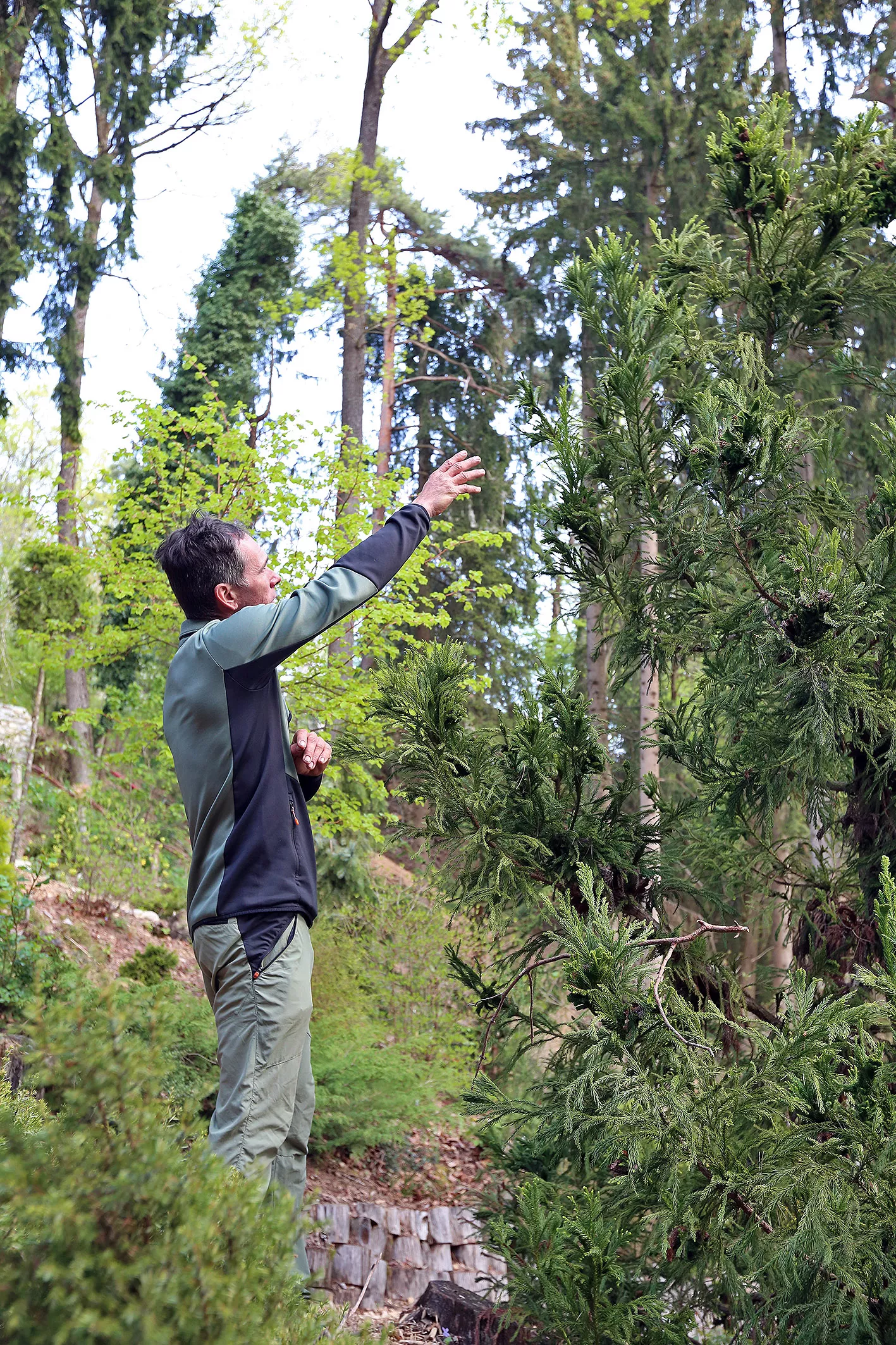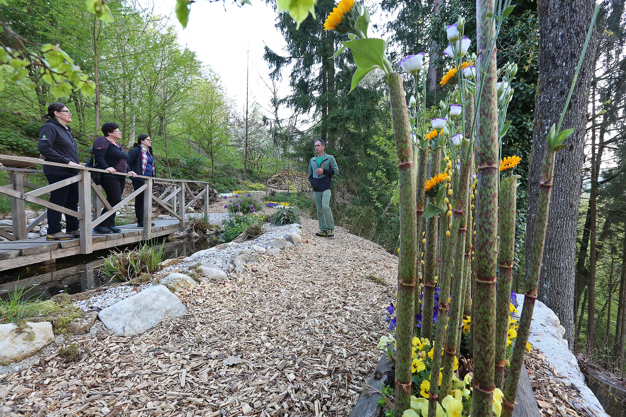 Po parku nas je vodil njegov vizionarski ustanovitelj in stvaritelj Miha, ki je prava živa enciklopedija rastlinskih vrst. Glavna botanična in krajinsko-arhitekturna posebnost parka je njegova izrazita brežina oziroma lega. Da bi na tem strmem terenu omogočil rast in preprečil erozijo, je park zasnoval terasasto. Takšna lega ustvarja specifične mikroklimatske pogoje, ki omogočajo, da tu uspeva 2000 drevesnih vrst z vseh kontinentov sveta.