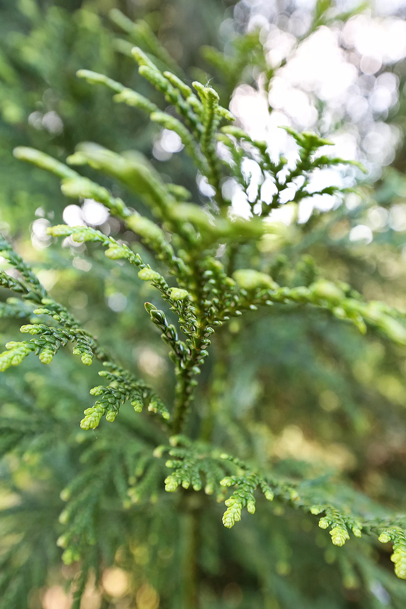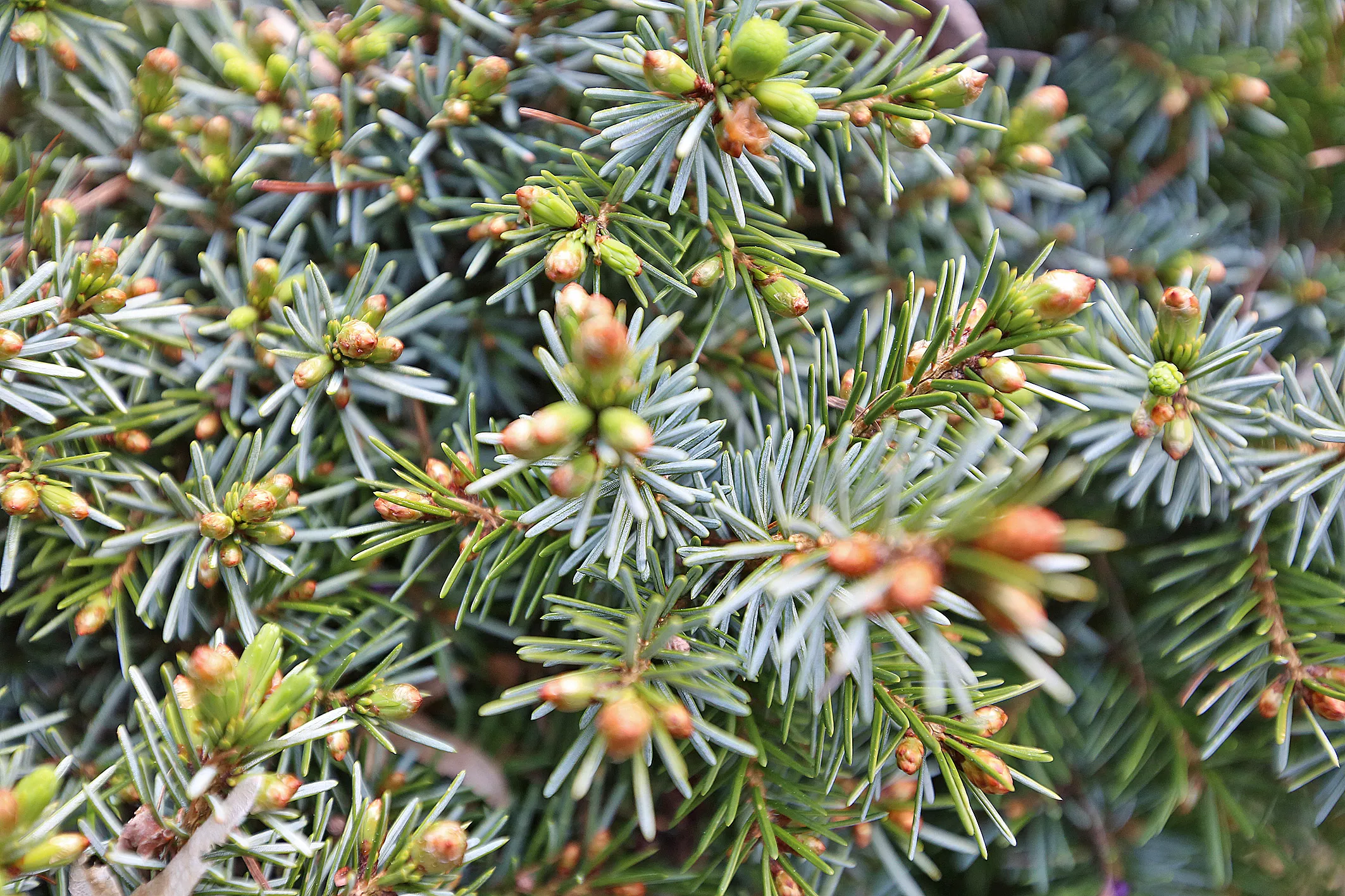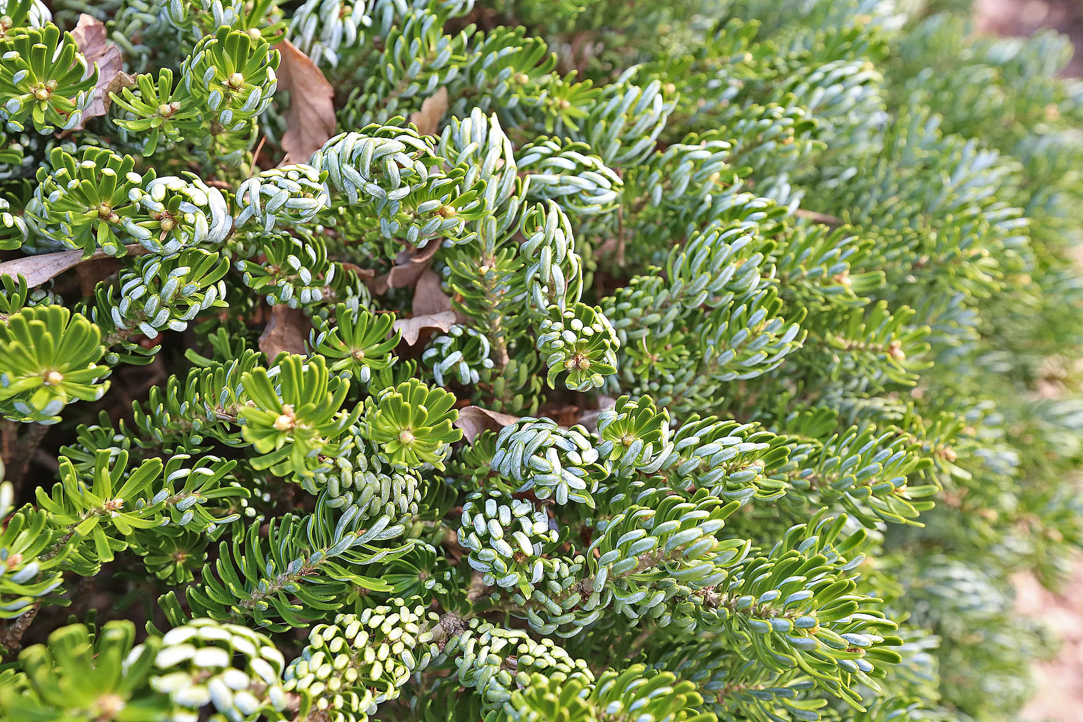 Miha je izčrpno predstavil bore, ki jih strokovno delimo na 1-, 2-, 3- in 5-igličaste vrste, ter nam pokazal stebričasti črni bor. Jelke so bile zastopane z dišečo, špansko, stebričasto nordijsko, korejsko (ki se ponaša s čudovito kompaktno, gosto strukturo rasti in vijolično-modrimi storži) ter jelko, primerno za vzgojo novoletnih drevesc. Med smrekami nismo mogli spregledati kavkaške z rdečimi cvetovi, kačaste, omorike-Pančićeve, povešave, stebričaste polsrebrne ter avtohtone.