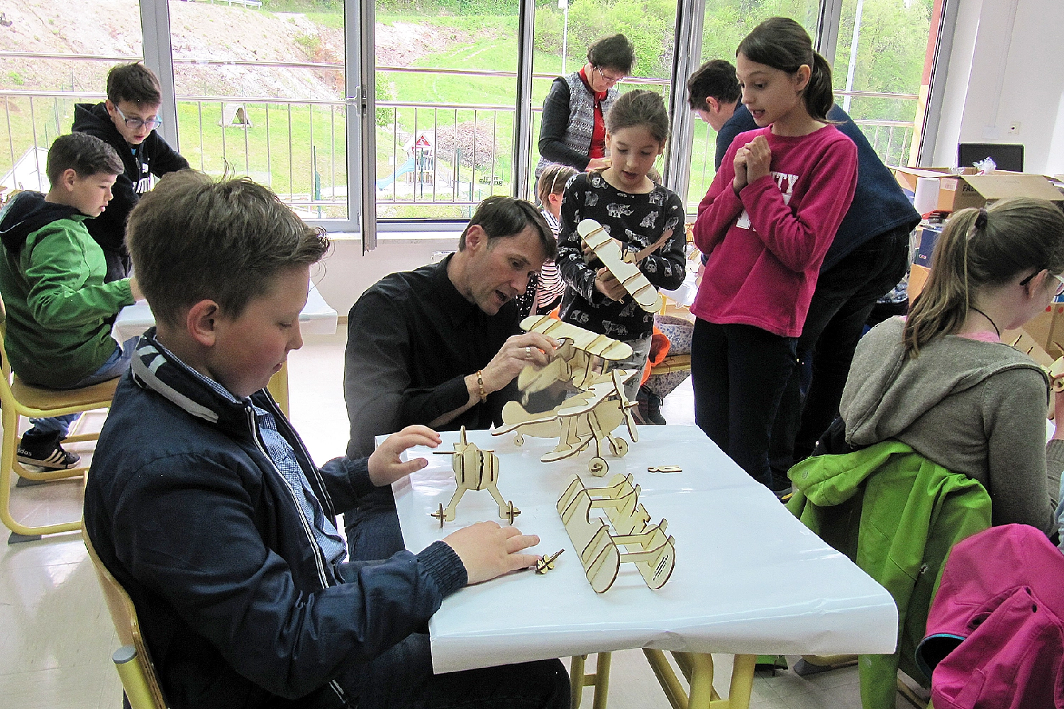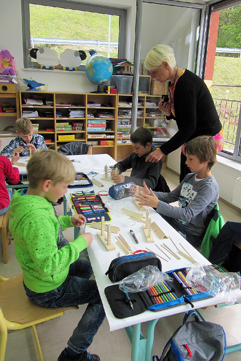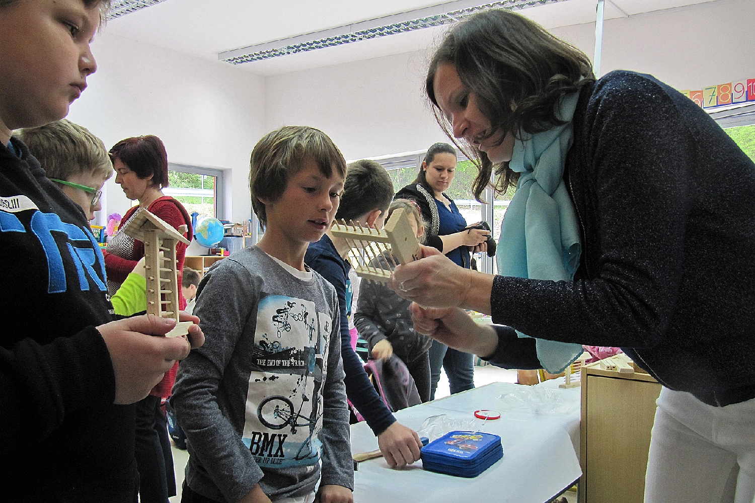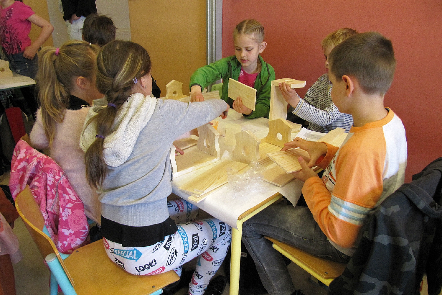 Na delavnicah so nato izdelovali lesene izdelke. Material in elemente za izdelke je prispevalo podjetje Mizarstvo Kos. Dijaki Srednje lesarske šole iz Ljubljane so izdelke nažagali, navrtali in izrezali na laserju. Otroci pa so jih s pomočjo mentorjev iz lesarske šole in učiteljev sestavili in zlepili. Nastali so leseni avtomobilčki, letala, kozolci in ptičje hišice.