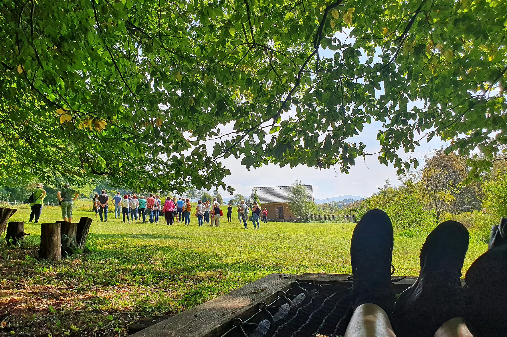 Pri družini Stankovič in Zavodu Čebela smo udeleženci doživeli edinstven preplet treh tradicionalnih dejavnosti – čebelarstva, lončarstva in zeliščarstva. Spoznali smo, kako lahko dediščina obrti dobi sodobno vlogo v turistični ponudbi ter povezuje naravo, kulturo in izkušnjo obiskovalca. Navdušenje je požel sodoben čebelnjak za izvajanje apiterapij in postelja v gozdu. Pomirjujoče je doživeti pogled usmerjen v krošnje dreves.